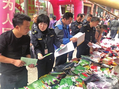 2021年以来,遵义市综合行政执法系统聚焦民生,不断强化农产品质量安全执法检查力度,共查办种子行政违法案件134件、农药案件253件、农产品质量安全案件163件,切实保障农业产业健康发展。图为日前,该局农业执法人员在红花岗区内环路农资市场检查涉农产品。 (记者 肖时雨 摄)