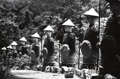 夜郎谷是贵州老艺术家宋培伦先生的神奇之作,这里的石头建筑、雕塑和陶艺等都充满了浓郁的艺术气息,既是夜郎古国历史文化的浓缩再现,也是喀斯特地貌奇幻艺术与自然生态的融合。这里不仅山美水美、自然风光独具一格,而且还蕴藏着丰富的民族文化和历史文化。申家信用黑白影像将这一奇观重新诠释,其独特的视觉语言和利用深沉的影调处理,特别是那些光影中的黑色让人着迷,深邃未知的世界,带着夜郎的气息向我们迎面走来。
