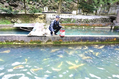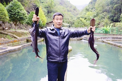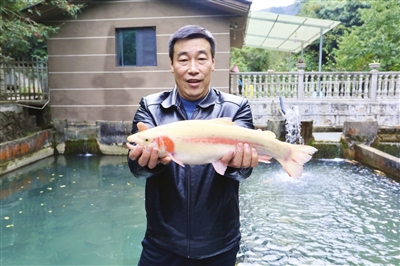 该养殖场主要养殖有鲟鱼、鳟鱼、鸭嘴鱼、雅鱼等冷水鱼。“养殖场四周森林茂密,左侧有一个溶洞,常年有泉水流入养殖场。在这样多山多水的环境下,我们养殖场的鱼类品质更优,市场接受度更高。2021年销售量约20吨,产值60余万元。”该养殖场负责人吴永梅告诉记者。