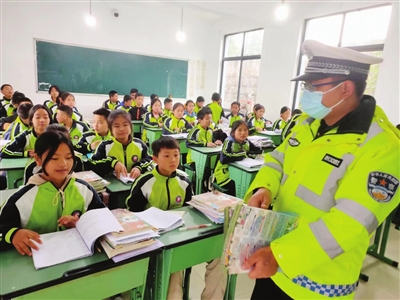 为进一步增强学生道路交通安全意识,提高学生防范危险的能力,近日,仁怀市学孔镇组织交警党员志愿者到林阁中学开展道路交通安全知识宣传活动。 (王光敏 摄)