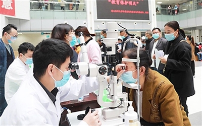 近日,遵义医科大学附属医院内分泌与代谢病科组织医护人员在门诊一楼大厅开展义诊活动,免费为市民进行糖尿病风险、视网膜病变筛查,开展健康咨询。图为义诊现场。