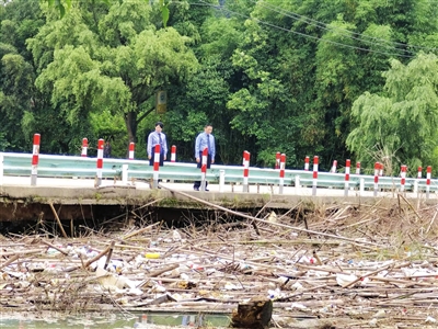 “西来奄平桥下大量漂浮物已经堵塞了桥洞,好几天了却没有人来处理。”湄江街道东南村村民向湄潭县检察院投诉,每当上游涨水时,就会有竹子、倒伏树木、白色塑料垃圾等冲到西来奄平桥下堵塞桥洞,影响桥和河道安全。