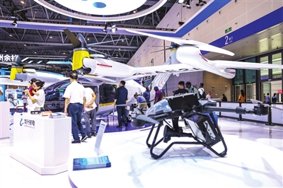 9月25日,观众在第四届全球数字贸易博览会数智出行展区参观无人机。