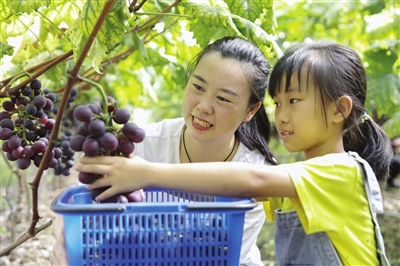 图为9月4日,游客在该葡萄园内采摘葡萄。