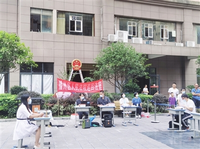 近日,播州区人民法院到该区南白街道南白社区巨宇融鑫小区现场审理一起高空抛物砸伤人案件。 据了解,为妥善解决居民矛盾,南白社区党支部庭前积极配合法庭调查提供相关资料,组织召集社区干部、党员志愿者们做好庭前准备的协助工作。辖区内各物业公司代表,巨宇融鑫小区居民到现场旁听。 (记者 徐茂豪 摄)