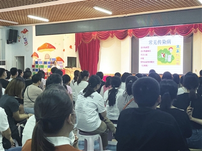 近日,桐梓县妇幼保健院党支部组织医务人员到桐梓县实验幼儿园虎峰园区开展传染病知识讲座,并现场开展义诊活动。图为传染病知识讲座现场。
