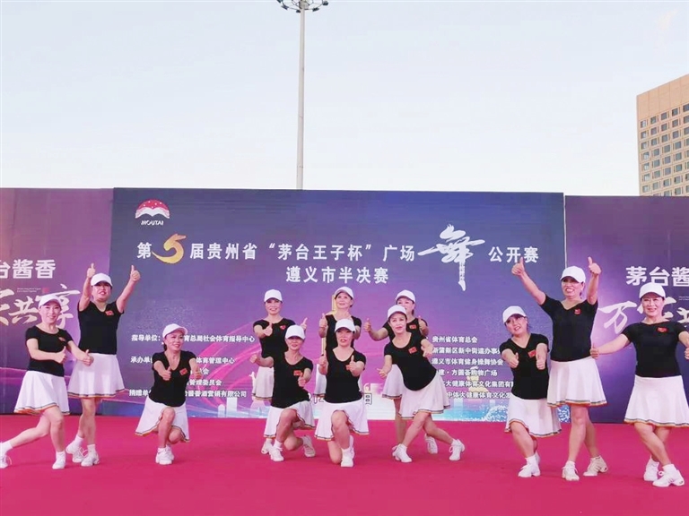 日前,由省体育总会主办,省社会体育管理中心、市体育总会、新蒲新区管委会承办的第五届贵州省“茅台王子杯”广场舞公开赛遵义市半决赛在新蒲新区中建·方圆荟购物广场举行,来自全市各县(市、区)的18支参赛队伍共400余名选手参加了比赛。图为比赛现场。