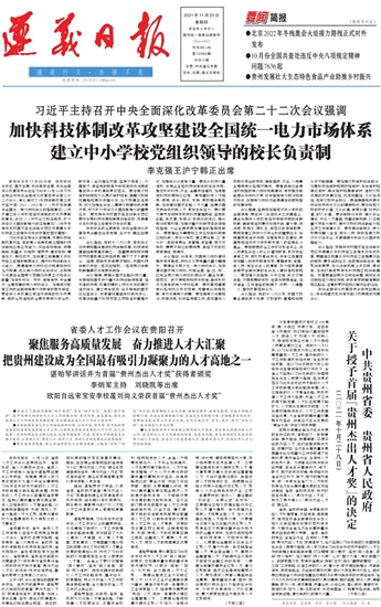 省委人才工作会议在贵阳召开~~~谌贻琴讲话并为首届“贵州杰出人才奖”获得者颁奖
