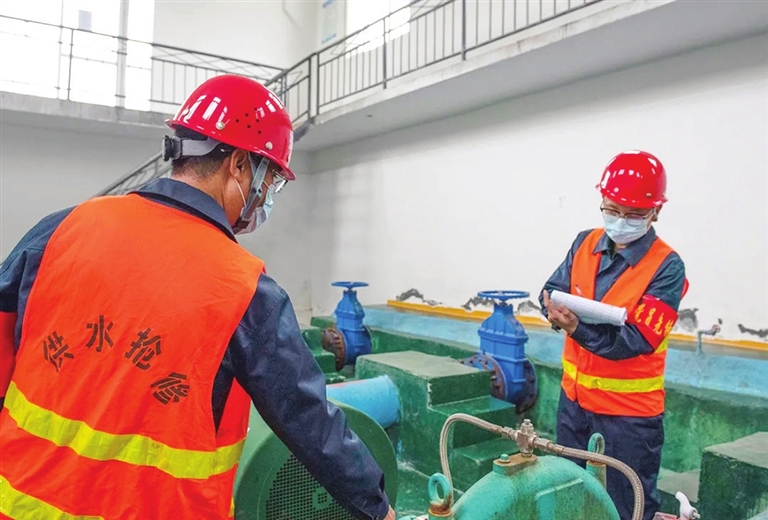 为确保冬季安全供水,播州区供水公司针对冬季生产特点,对供水管网和设备设施进行拉网式巡查巡检,制定完善供水设施防冻保温工作方案,提高突发事件应急处置能力,充分做好各项生产、服务准备,全力保障辖区居民冬季用水。图为播州区供水公司工作人员检查供水设施设备。 (记者 张婷 摄)