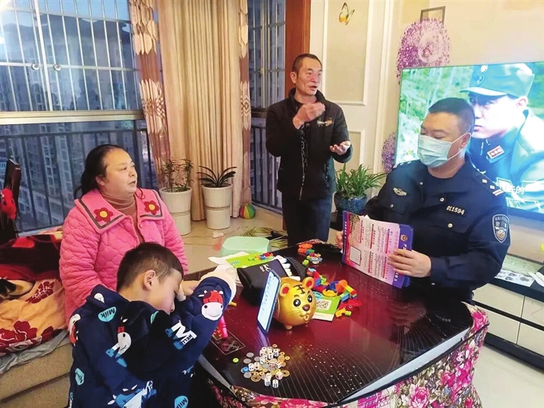 近日,汇川区高桥街道办事处联合辖区派出所、特巡警、社区志愿者,分成若干小组,采取敲门入户、亮明身份的方式,面对面地向居民宣传防范电信网络诈骗常识,有效提高居民安全防范意识。 (记者 王秦龙 摄)