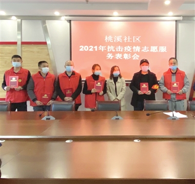 为树立榜样,弘扬志愿精神,日前,红花岗区忠庄街道桃溪社区对疫情防控志愿者进行了表彰,以激励更多人积极参与到社区服务中,推动社区形成共治、共建、共享的和谐局面。 (范茜 摄)