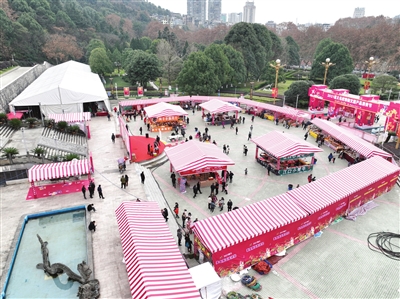 12月19日,2021遵义名优特新文旅产品消费节在凤凰山文化广场举行。活动将持续至12月29日。图为活动现场(无人机照片)。
