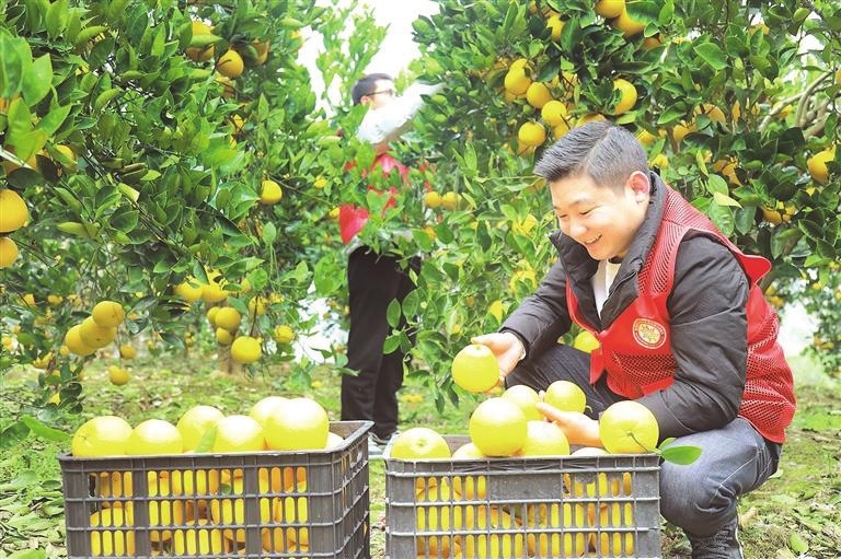 新蒲新区新舟镇群乐村将胡柚作为“一村一品”精品水果产业来抓,采取“党支部+专业合作社+基地+农户”组织方式,打造了近280亩胡柚示范种植基地,带动群众种植胡柚1000余亩。今年,该村种植的胡柚迎来丰果期,目前已销售30万余斤,预计实现产值近200万元。 (简垦 摄)