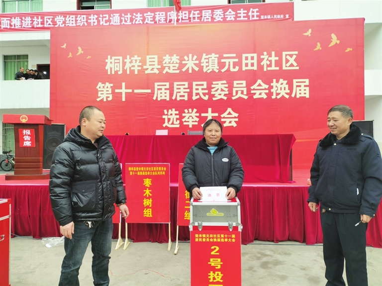 近年来,桐梓县积极实施村级后备力量培养工程,为全县村(社区)换届蓄积助力农村发展的干部、人才。图为该县楚米镇元田社区居民投票选举村干部。 (昌德奇 摄)