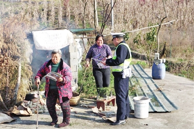 为切实提高农村地区广大交通参与者的交通安全意识和文明交通意识,进一步筑牢辖区农村道路交通安全防线,近日,遵义市公安交通管理局高速交警六大队结合辖区实际工作情况,组织警力进村入户开展冬季农村道路交通安全宣传活动。 (记者 何骥淯 摄)