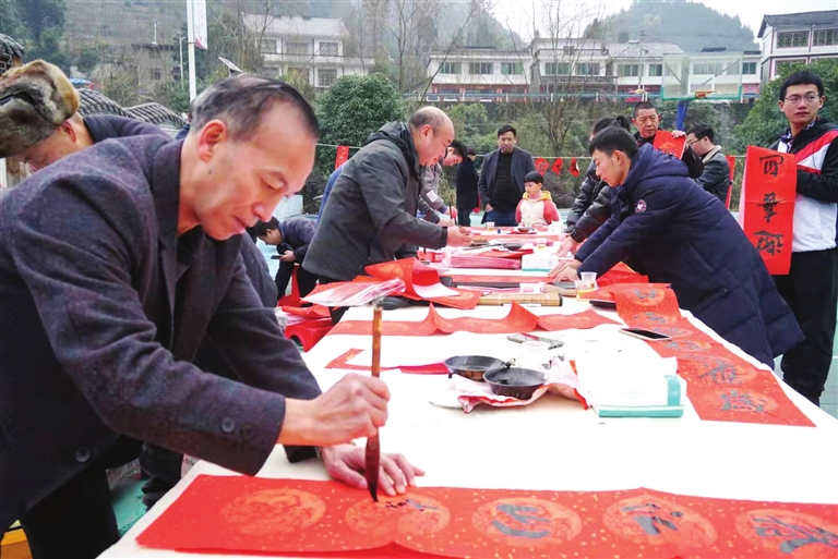 连日来,由凤冈县文联、县书法家协会、县摄影家协会组织的“送福迎新春”活动,分别走进花坪街道鱼跳村、龙泉街道体育场社区、凤岭街道宏丰社区等地,为村民写春联、拍全家福,深受村民欢迎。 (陈昌霖 廖乙衡 摄影报道)