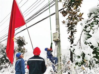 春节期间,凤冈县受低温雨雪天气影响,导致辖区内多条供电线路出现覆冰。凤冈供电局按照应急预案安排,15支党员突击队立即行动,出动车辆40余台次、值班和巡视线路员工120余人次,奔赴抗冰保电第一线,开展特巡、测温等工作,全力以赴保障供电设施安全稳定运行。 (记者 李婷婷 摄)