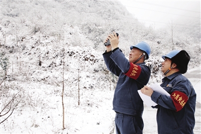 近日,南方电网贵州遵义桐梓供电局党员突击队坚守一线,对辖区线路设备开展雪中特巡,保障山区群众安全用电。 (赵柳青 摄)