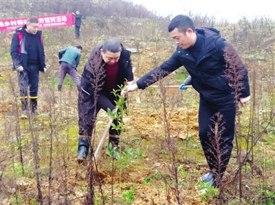 2月7日,播州区龙坑街道党工委组织党员干部与该社区党员志愿者,到梳池社区开展义务植树活动。 (李桂 摄)