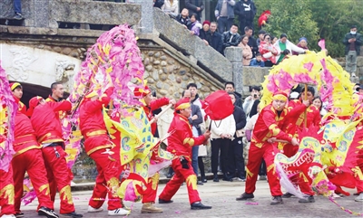 2月15日,贵州乌江寨国际旅游度假区举办舞龙表演,欢度元宵节。