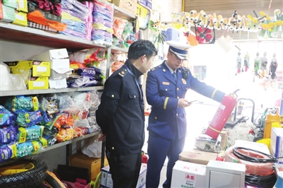 3月15日,新蒲新区消防救援大队联合该区市场监督管理局开展“3·15”消防产品专项检查。图为检查现场。 (记者 查静 摄)