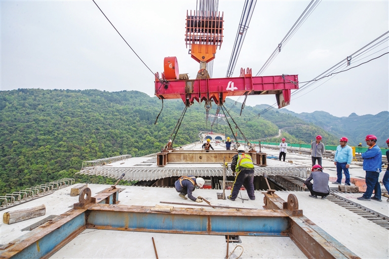 据悉,仁遵高速通车后,遵义城区到仁怀的车程将缩短至30分钟。图为桥面合龙现场。