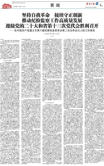 ~~~——在中国共产党遵义市第六届纪律检查委员会第二次全体会议上的工作报告