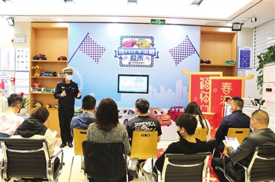 为进一步提高企业员工的交通安全意识、法治意识、文明意识,3月28日,播州区交警大队民警走进中国建设银行播州区马家湾支行开展道路交通安全宣讲活动。 (记者 何骥淯 摄)