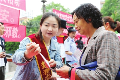 为进一步增强群众识毒、防毒、拒毒的意识,4月14日,赤水市公安局禁毒大队组织志愿者在该市香樟林广场开展禁毒宣传活动。