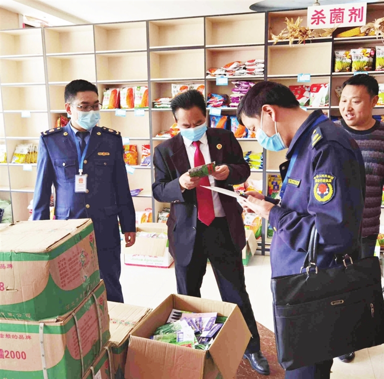 近日,正安县检察院联合县农业农村局、县综合行政执法局、县市场监督管理局、县公安局、县法院等部门共同开展了“农资打假”专项整治行动,对涉及区域经营农资的近40户商户、企业实地进行抽查,发现违法行为4起,针对发现的问题,各职能部门根据各自职责现场对销售不合格农资产品违法行为启动相关处置程序,对查出的不合格产品及时下架、坚决收缴、依法查处。图为检查现场。 (刘子学 杨珊 摄影报道)