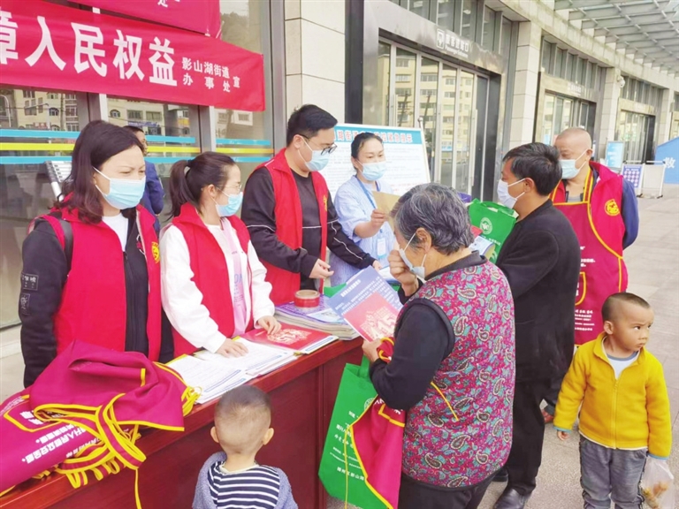 日前,播州区影山湖街道开展全民国家安全教育日宣传活动,组织社会治理办公室、各社区、关工委向群众宣传《禁毒条例》、防范电信网络诈骗知识等国家法律法规,增强公民法律意识,加深广大群众对总体国家安全观的理解,营造“国家安全,人人有责”的浓厚氛围。 (记者 张婷 摄)