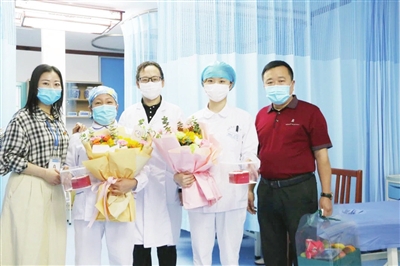 5月12日,红花岗区口腔医院党总支组织开展了慰问一线护理人员、表扬优秀护理人员、登山竞赛等丰富多彩的庆祝“5·12”国际护士节活动,激励广大护理人员在今后的工作中以更加饱满的精神状态,奋发有为的工作劲头,履行好救死扶伤、服务人民群众的职责。图为该院党总支有关负责人慰问一线护理人员。 (易梦琳 摄)