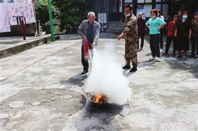 5月12日,赤水市丙安镇组织党员干部开展防灾减灾宣传演练活动,旨在进一步增强广大干部群众的防灾减灾意识,提升应急处置能力。 (记者 陆邱珊 摄)