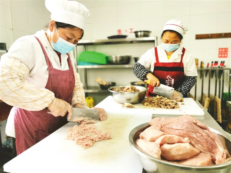 土豆烧牛肉、西红柿炒蛋、清炒冬瓜、苹果……在汇川区板桥红军小学,伴随下课铃声响起,老师们有序地将可口的营养饭菜送到教室。