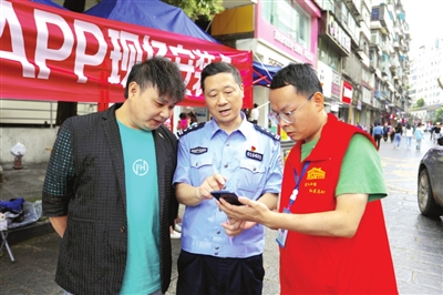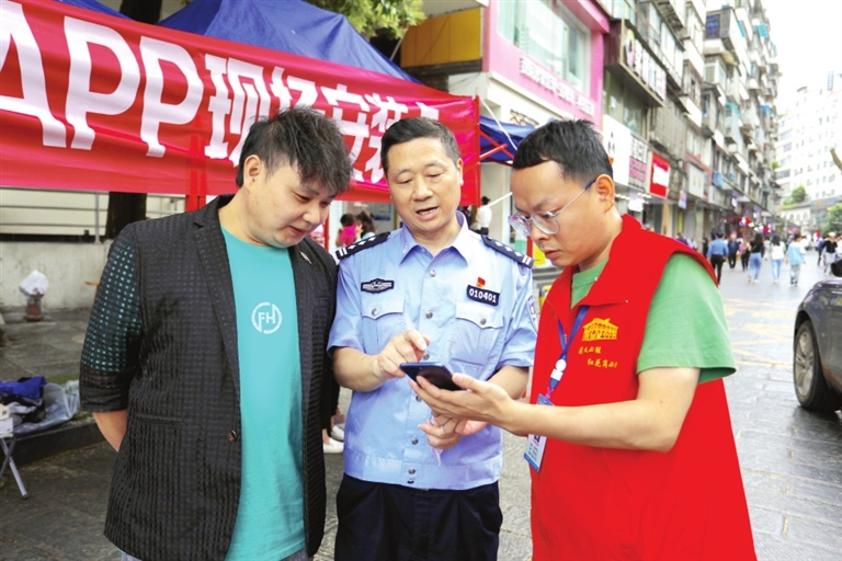 近段时间以来,红花岗区老城街道联合遵义会议会址派出所,在辖区人流集中的区域设置“国家反诈中心”App现场安装点,进行相关宣传并帮助指导大家安装,达到了良好效果。 (记者 向婧 吴凡 摄影报道)