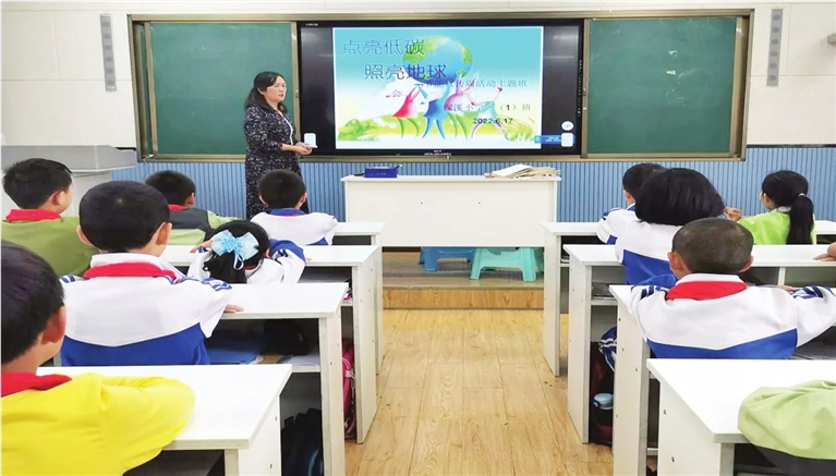 近日,红花岗区深溪镇中心学校以全国节能宣传周为契机,通过主题班会积极开展节能环保宣传活动,引导学生做好节粮、节水、节电、垃圾分类,自觉做绿色低碳生活的传播者和践行者。 (记者 一丁 摄)