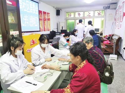 近日,红花岗区老城街道老城社区卫生服务中心医护人员走进红花岗社区,为辖区65岁以上的老年人提供免费健康体检服务,并宣传健康保健知识。 (记者 向婧 摄)