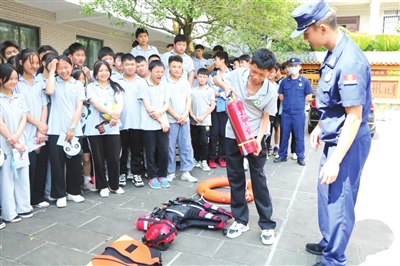 近日,桐梓县消防救援大队组织开展消防安全进校园活动,消防队员走进桐梓县娄山中学,以“防火防溺水”为主题为学校师生们上了一堂暑期“安全课”。 (记者 王秦龙 摄)