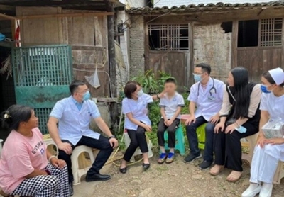 近日,遵义医科大学附属医院团委组织烧伤整形外科、骨科、呼吸内科等科室的青年医护工作者,前往汇川区高桥街道泥桥社区、十字社区,走进部分村民家中,开展“我为群众办实事 送医上门暖民心”实践活动。图为活动现场。 (记者 吴杰 徐茂豪 摄影报道)