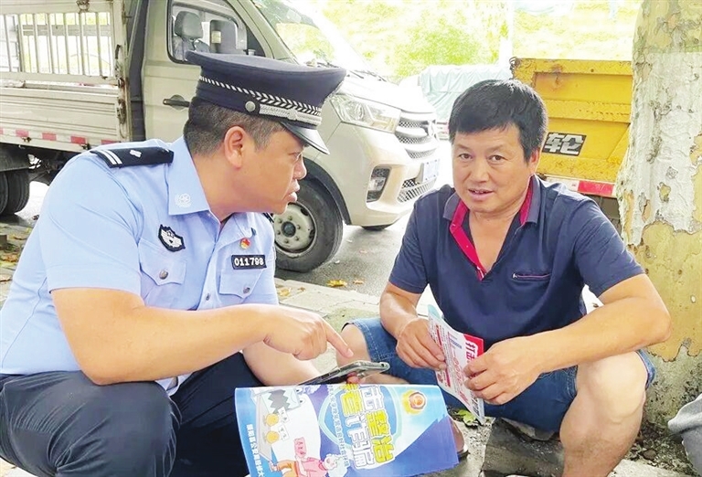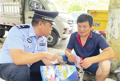 连日来,绥阳县公安局经侦大队组织开展防范经济犯罪宣传活动,民警走上街头,向群众宣讲防范化解金融风险等相关知识。 (记者 王秦龙 摄)