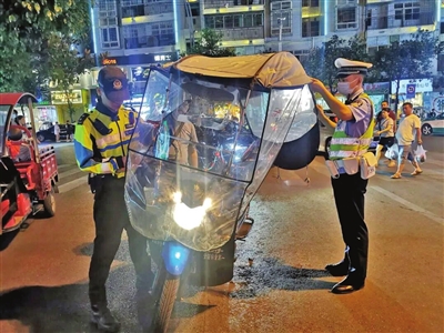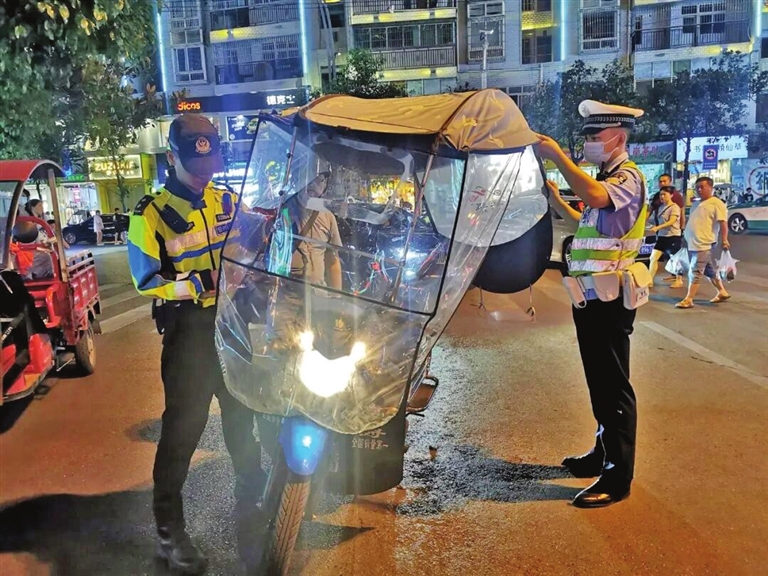 近日,正安县公安局交警大队开展整治行动,重点对驾驶二轮摩托车、电动车不佩戴安全头盔和摩托车非法改装加装遮阳伞等行为进行整治。 (记者 王秦龙 摄)
