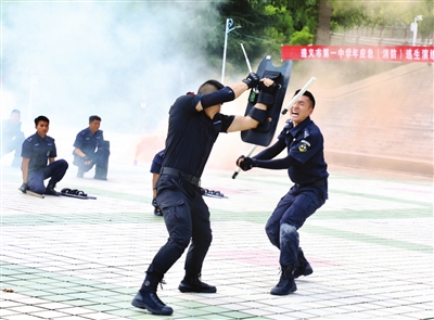 随后,特巡警队员们现场表演了警棍盾牌操、擒敌术等综合警务技能,英姿飒爽的动作,赢得了师生们的阵阵掌声。