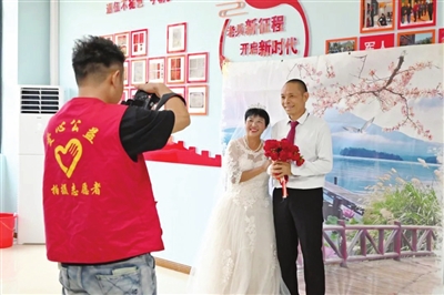 今年7月以来,遵义市文联携手莱卡影像环球旅拍婚纱摄影开展“遵义文艺公益行——百村万户全家福公益摄影行动”,截至目前,全市各县(市、区)近2000个家庭参加了活动。图为工作人员近日在新蒲新区礼仪街道为居民拍摄。 (记者 张婷 摄)