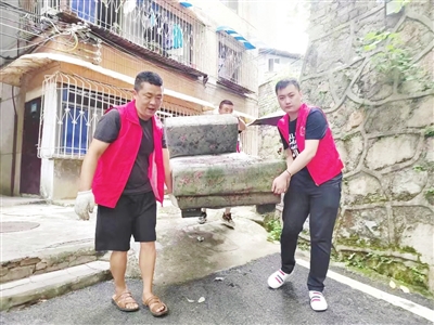 今年以来,汇川区充分发挥在职党员、机关干部、热心居民和社区工作人员等力量,按照“6+N”模式,成立文化、治安、义务巡逻等志愿服务队,为群众提供志愿服务。图为志愿者在该区大连路街道长新社区清除杂物。 (记者 一丁 摄)