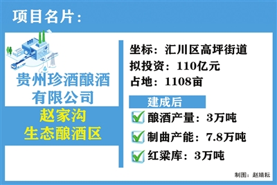 企业文化厚重,产业基础雄厚。贵州珍酒酿酒有限公司是我市的重点企业,赵家沟生态酿酒区项目是落实省委、省政府“四化”建设和实现工业倍增计划的具体体现。该项目占地面积1108亩,拟投资110亿元,建成后酿酒产能3万吨,制曲产能7.8万吨,红粱库3万吨。