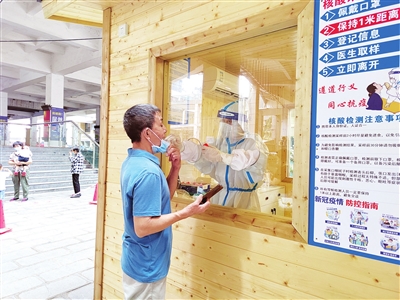 9月20日,位于汇川区大连路街道大山社区的免费核酸采样点开始进行核酸采样工作。图为采样现场。
