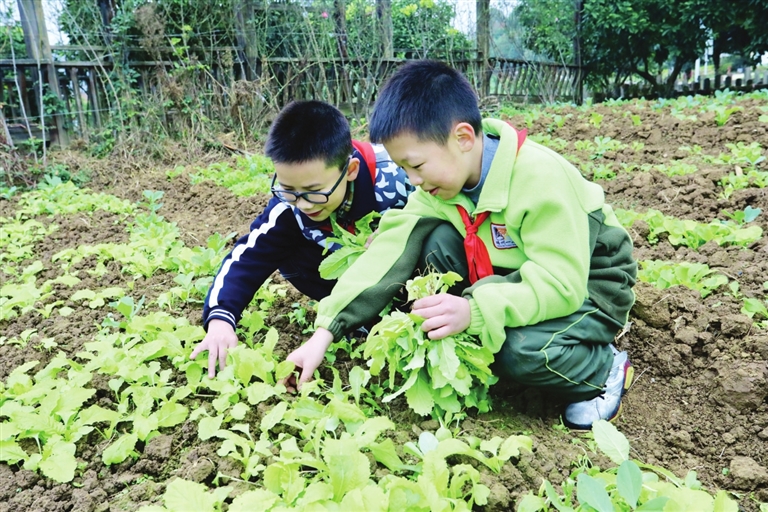 汇川区第五小学因地制宜,利用闲置的教学楼顶开办“海棠农场”,聘请有种植经验的“农场顾问”进行指导。自从有了自己的“责任田”以后,学生们利用课余时间前来播种、除草、浇水,还填写了《观察日记》。