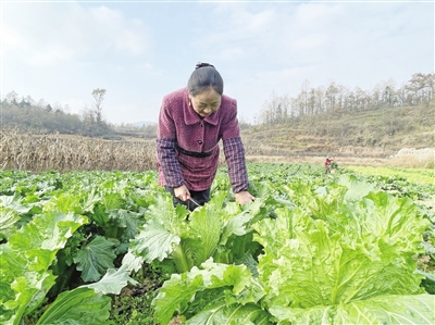 在道真自治县隆兴镇浣溪村,绿油油的白菜轮茬成熟,村民们正在菜地里忙着采收打包,准备送往城区各超市和重庆等地。