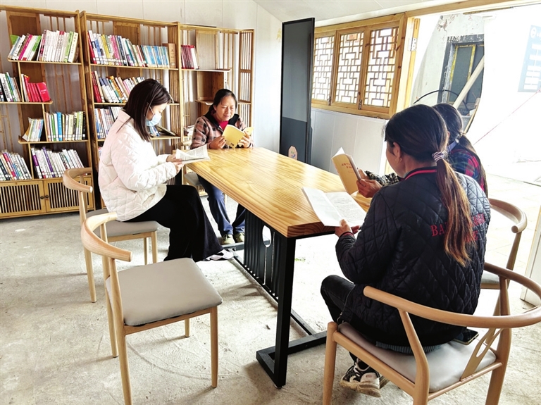 为不断丰富群众的精神文化生活,仁怀市苍龙街道水塘村建起农家书屋,书屋内有书籍500多册,涵盖农村实用种植养殖技术、法律、科普等多个门类。图为村民们在书屋里读书充电。 (记者 一丁 摄)