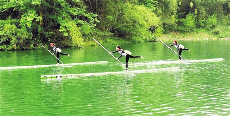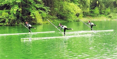 粗细均匀、承重量大的南竹是独竹漂的工具用材,一根竹子可承重60公斤左右。在独竹漂运动中,“漂者”依靠细竹竿的划动实现水上漂行,辗转腾挪如履平地。2007年,贵州省把独竹漂定为少数民族传统体育竞技项目,并在红花岗区举办了贵州省首届独竹漂大赛。2010年,独竹漂赛正式入选第九届全国少数民族运动会竞赛项目。今年5月,赤水市在大同举办为期10天的独竹漂培训班,独竹漂传承人彭刚、陈磊采用“理论+实践”的方式培训学员:水上平衡、水上划竿、水上转身、水上队列、上下竿、跳竿……